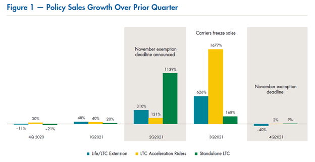 The sales growth in Washington impacted the entire LTC insurance industry. For instance, the diagram above shows how much LTC insurance grew during 2022 (Source: LIMRA).